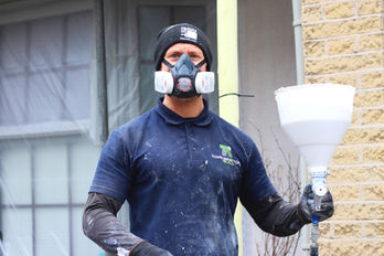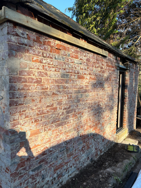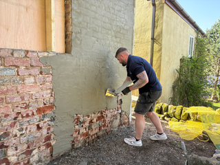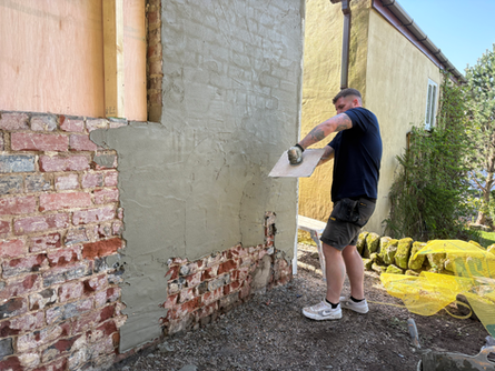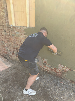The existing brickwork was primed to ensure proper adhesion, followed by a two-coat base render system, reinforced with mesh to provide strength and prevent cracking. This created a smooth, even surface ready for the final finish.
