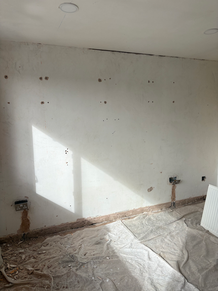 The work was completed with a two-coat skim finish, delivering a smooth, seamless surface ready for decoration.